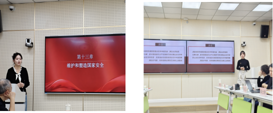 全国萌新磨课一等奖、自治区萌新磨课特等奖、第六届自治区思政课教学展示二等奖获得者马米娜,围绕《维护和塑造国家安全》开展说课展示,从教学目标设定、重难点突破、教法与学法设计等方面进行系统阐释,展现出扎实的教学功底与创新的教学设计思路。我校自治区骨干练兵一等奖获得教师杨星宇同步登台展示,以《绽放在中华文明沃土上的丝路霓裳》 为题,将地域文化特色与思政教学深度融合,呈现出一堂兼具思想性与趣味性的示范课程,赢得与会人员的一致好评。