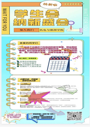 近日,机电与能源学院学生会、自律委员会、团助理及青年志愿者协会的纳新工作圆满结束,为各大学生组织注入了新鲜血液与蓬勃活力。
