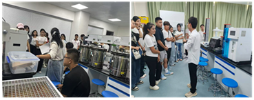 理论培训结束后,唐开婷、房华两位老师带领全体学生前往畜牧综合实验室参观。老师针对实验室常用仪器(如动物繁殖设备、饲料营养分析仪器等)的用途、操作步骤及日常维护方法进行逐一讲解,让学生直观了解实验设备的使用规范与安全要点。