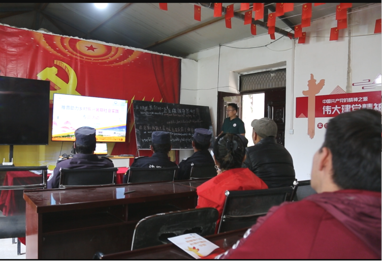 [图6:队员在叶城易地搬迁宣教馆为社区居民开展爱国主义主题宣讲]